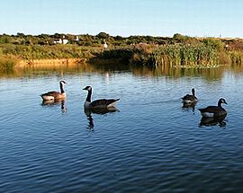 Travelling westwards through Cornwall by-pass the village of Indian Queens, remaining on the A30. Continue straight over the roundabout by the wind farm, signed "Redruth A30" and "Perranporth B3285".